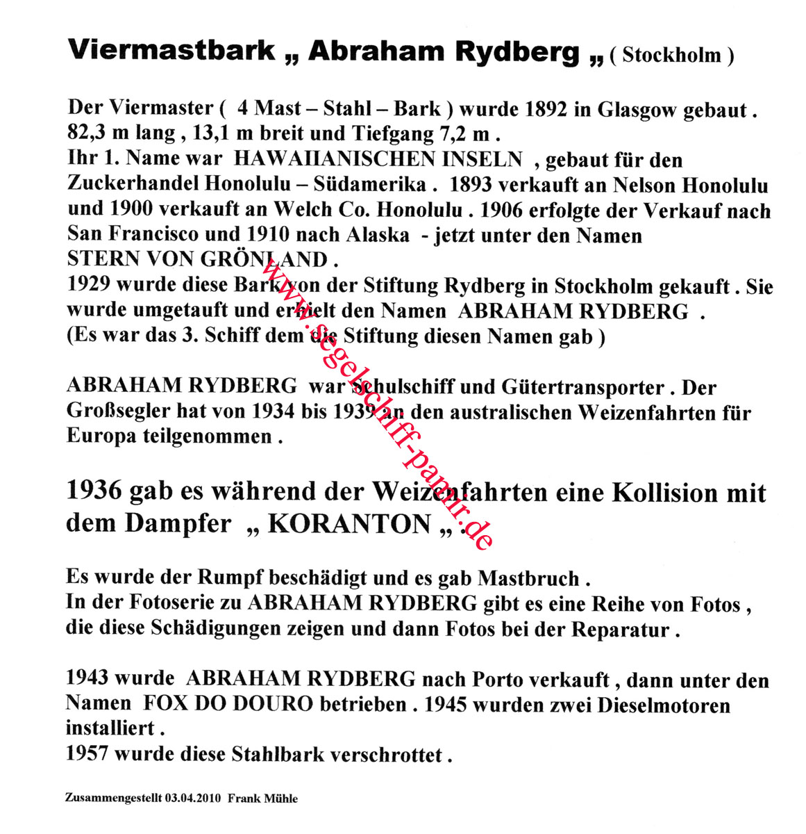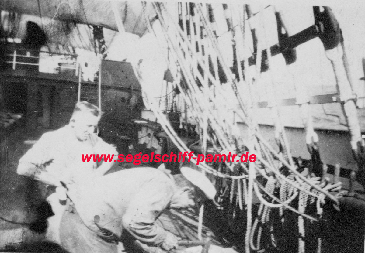 Der unbekannte Seemann hat nach Abmusterung von PAMIR seiner Tätigkeit als Matrose auf Viermastbark Abraham Rydberg unter schwedischer Flagge fortgesetzt, nach 1945 tätig als Fischer auf Fischereiboot Oostzee K 84 NL.